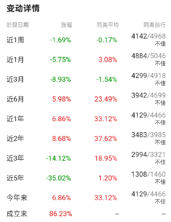 全年收益率6.86%,跑输沪深300指数十几个点,在4466只同类基金里面只排4129名,位居行业倒数10%。